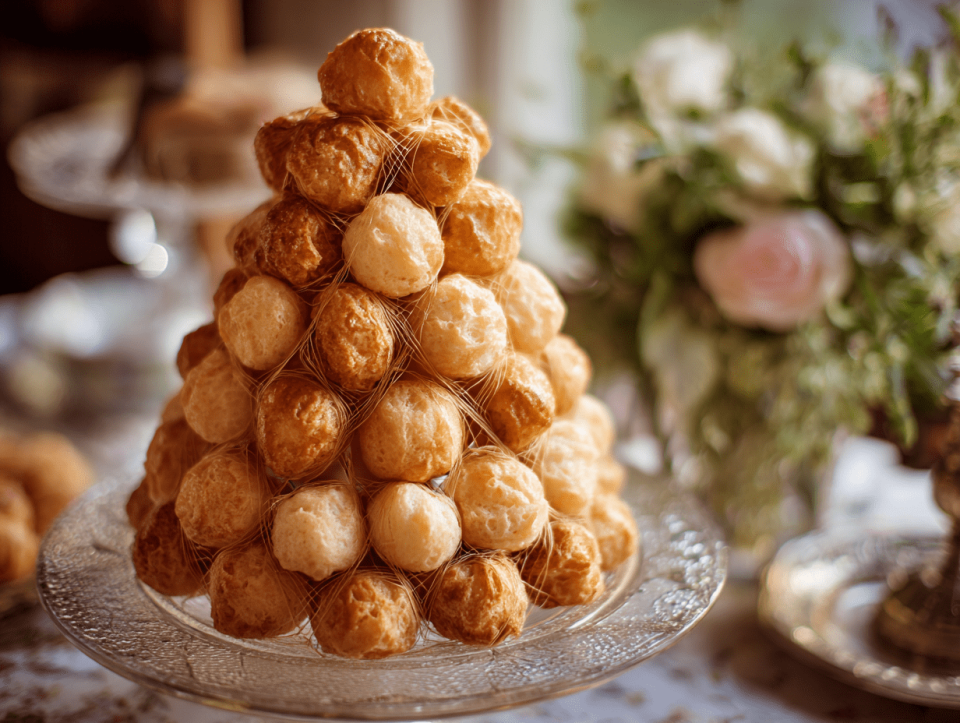 This classic French wedding dessert is a towering cone of choux pastry puffs filled with cream and bound together with threads of caramelized sugar. It is stunning, elegant, and delicious. A croquembouche makes a dramatic centerpiece and adds a sophisticated European touch to your celebration.