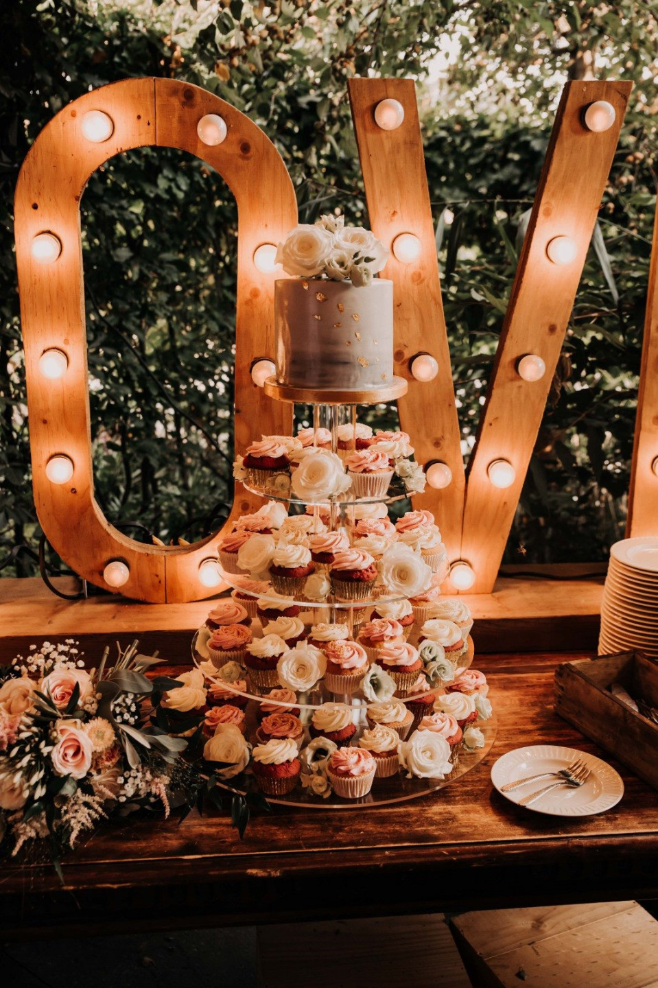 Light it up. Position your dessert table near a window for natural light (great for photos) or add fairy lights, candles, or a spotlight to make the display glow during an evening reception.