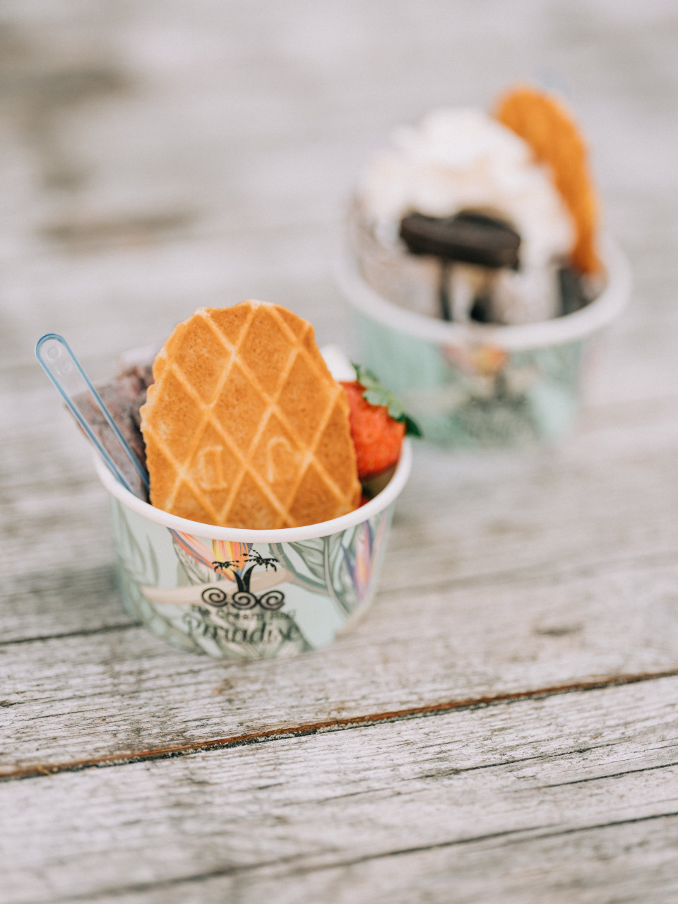 An ice cream or gelato bar is a crowd-pleasing option for summer weddings and couples who want their dessert to double as entertainment. You can rent an ice cream cart, hire a gelato vendor, or set up a DIY sundae station with scoops, toppings, sauces, and cones.