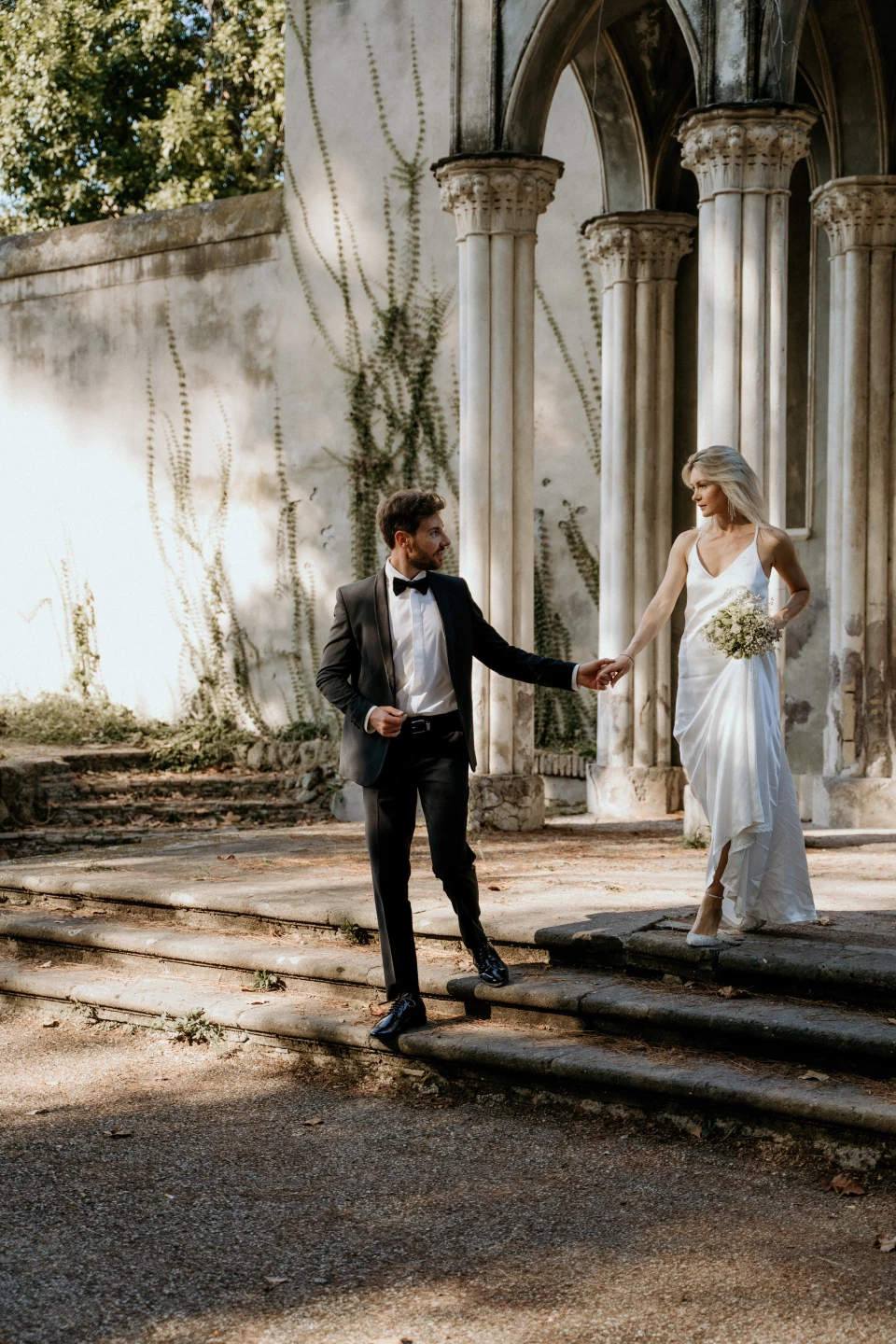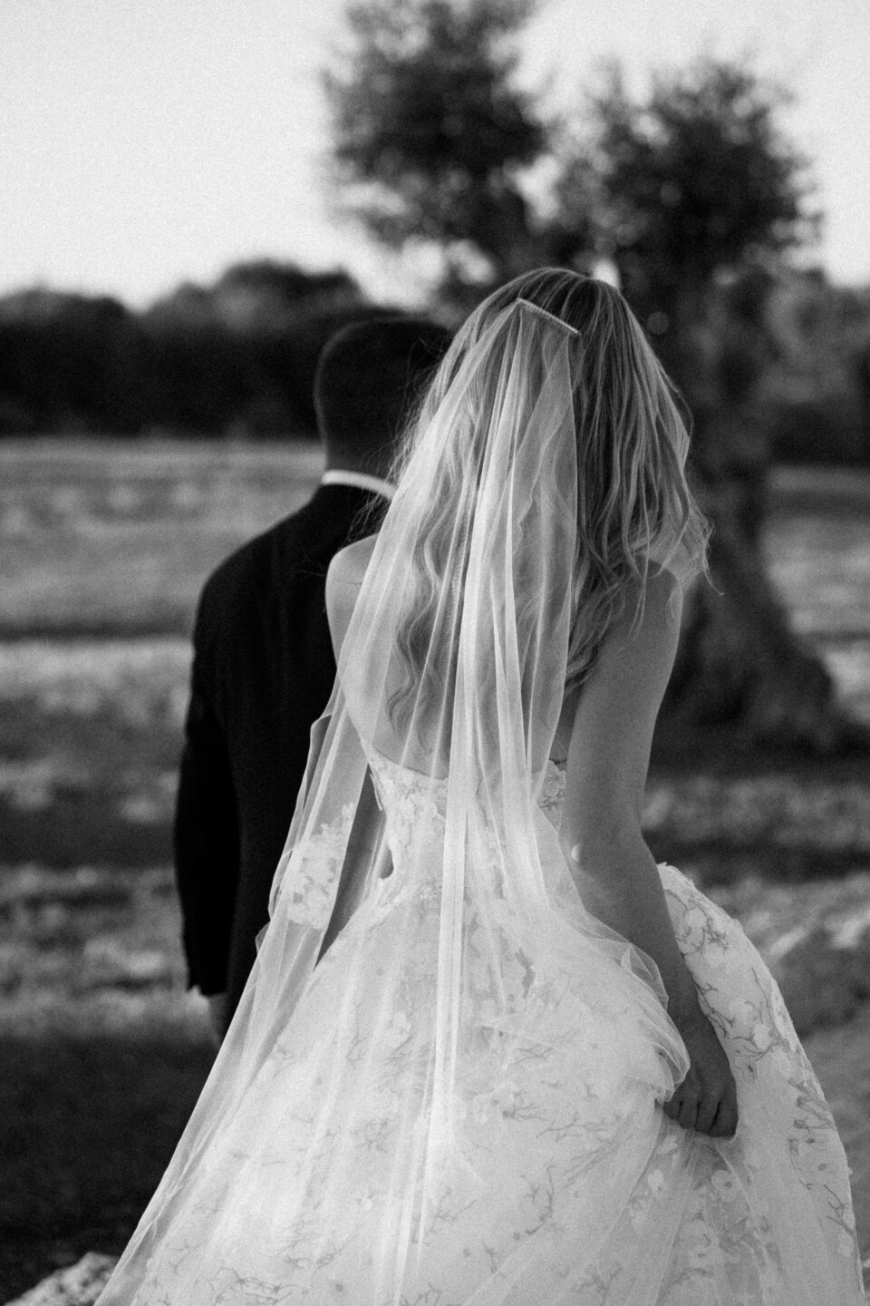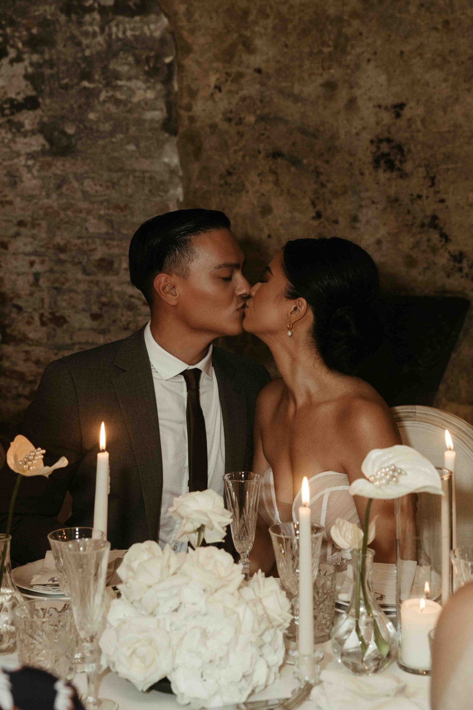 Dark and moody photography uses deeper shadows, rich tones, and dramatic contrast. It creates an atmospheric, cinematic feel that works beautifully for evening weddings, candlelit venues, and couples who love a romantic, dramatic aesthetic. The editing is distinctly different from bright, airy styles.