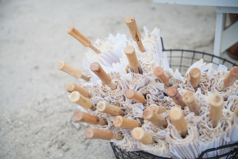 Umbrella basket. Provide a basket of matching umbrellas at the ceremony entrance. Clear or white umbrellas look beautiful in photos and protect guests during brief showers.