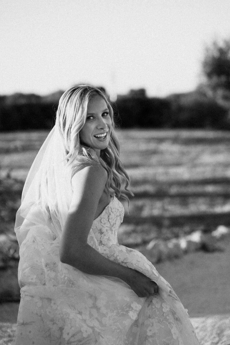 Down hair at a windy outdoor venue will blow across your face in ceremony photos. For outdoor ceremonies, consider a half-up style to keep hair off your face, then take it fully down for the indoor reception. Or plan for a textured, windswept look that embraces the breeze.