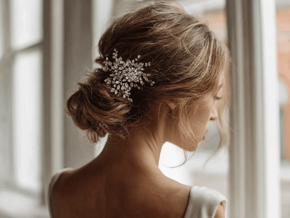 Updos: Combs (placed above or below the bun), hair vines (wrapped around), pins (scattered through), or a tiara (placed in front). Updos showcase accessories beautifully because the clean lines do not compete.