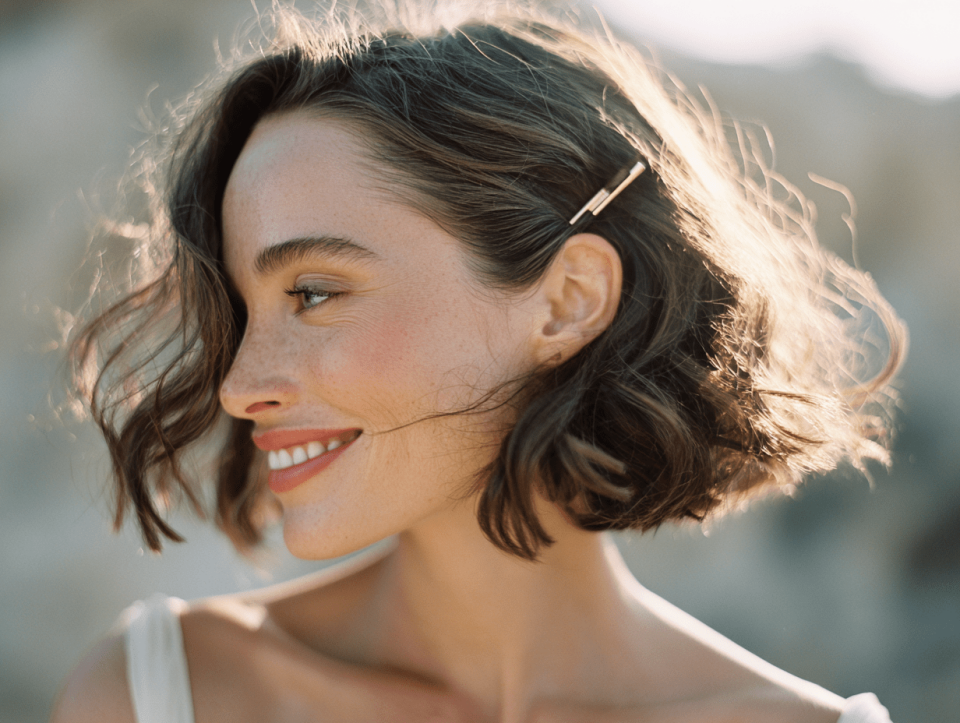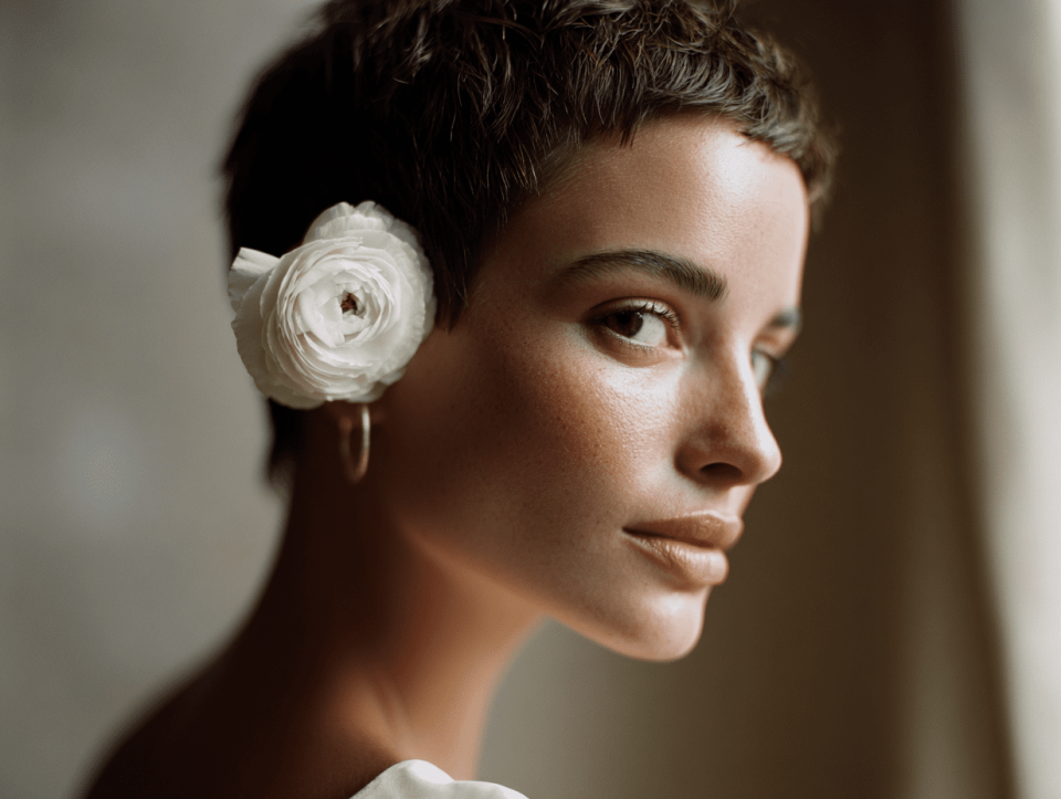 Pixie brides are bold, modern, and effortlessly chic. Your best options: a textured, piece-y pixie with a statement headband, jeweled clip, or fresh flower. Vintage finger waves for an editorial, 1920s-inspired look. A sleek, smoothed pixie with dramatic earrings (let the jewelry be the accessory). A birdcage veil is the perfect pixie companion. See our short hair bridal guide for detailed pixie inspiration.