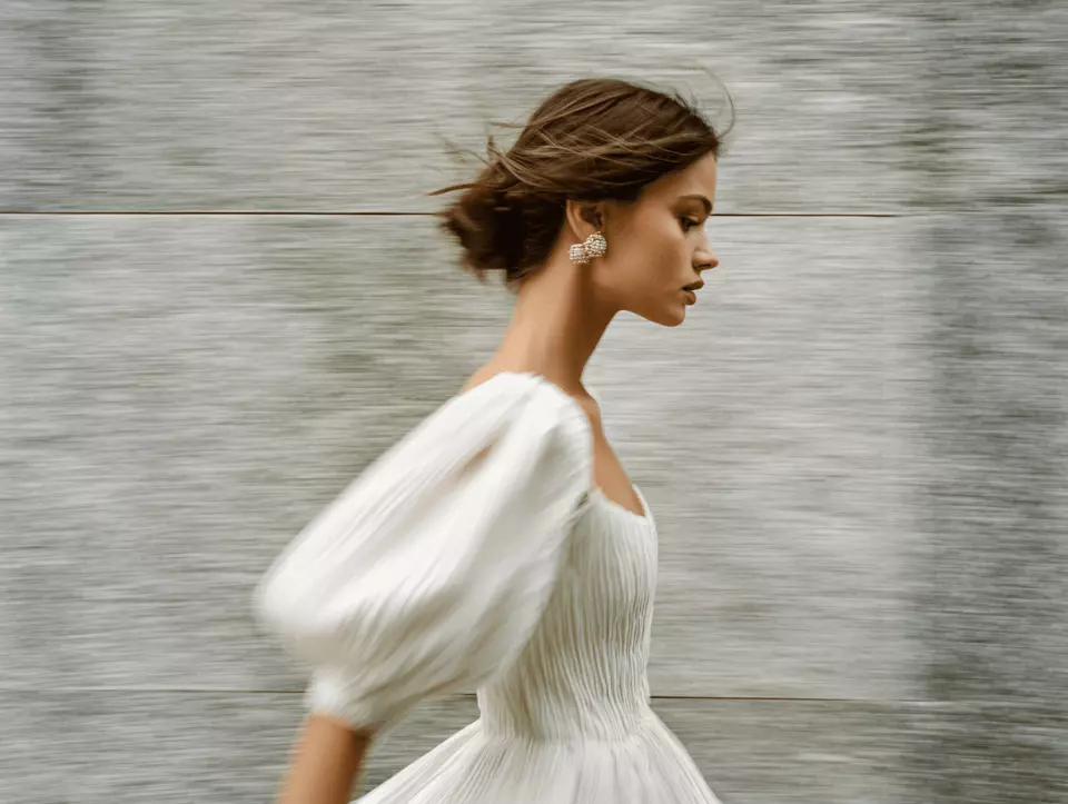 voluminous, billowy sleeve that is wide through the arm and gathers at the wrist with a fitted cuff. Bishop sleeves make a dramatic, fashion-forward statement and add romantic volume to the upper body. They pair best with simple, clean silhouettes like A-line or sheath dresses so the sleeves are the focal point. Bishop sleeves are one of the biggest bridal trends right now.