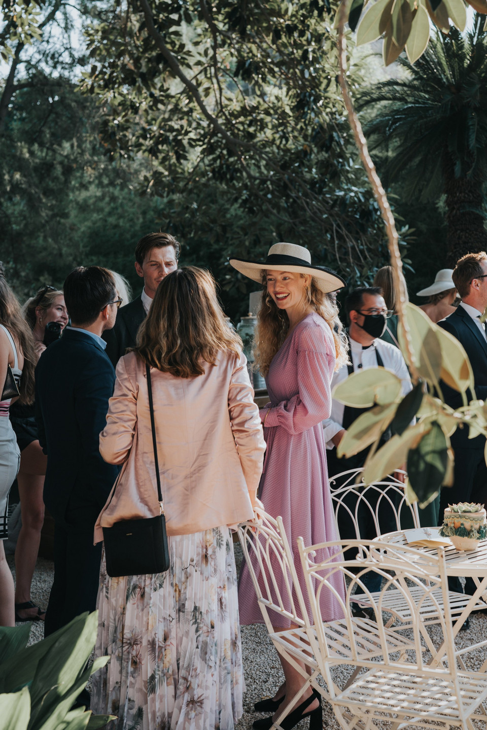 Unless the wedding is a traditional British-style ceremony or derby-themed wedding, elaborate hats are inappropriate. Even at formal weddings, keep hats modest if you wear one. Huge brims block views in photos and can annoy people behind you. A subtle fascinator or no hat is the safer choice.