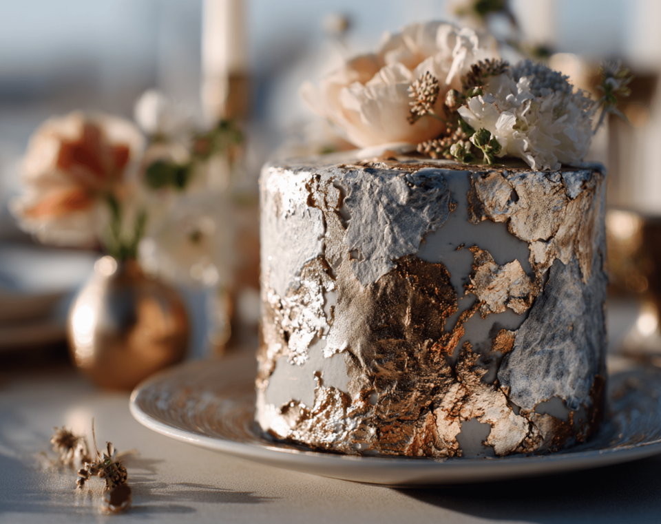 Modern cakes use fewer decorative elements, not more. A smooth all-white cake with a single gold leaf detail. A textured buttercream cake with a cluster of three fresh roses. A two-tier cake with a single geometric accent. The restraint makes the details that ARE there feel more intentional. See our minimalist wedding cake guide for detailed inspiration.
