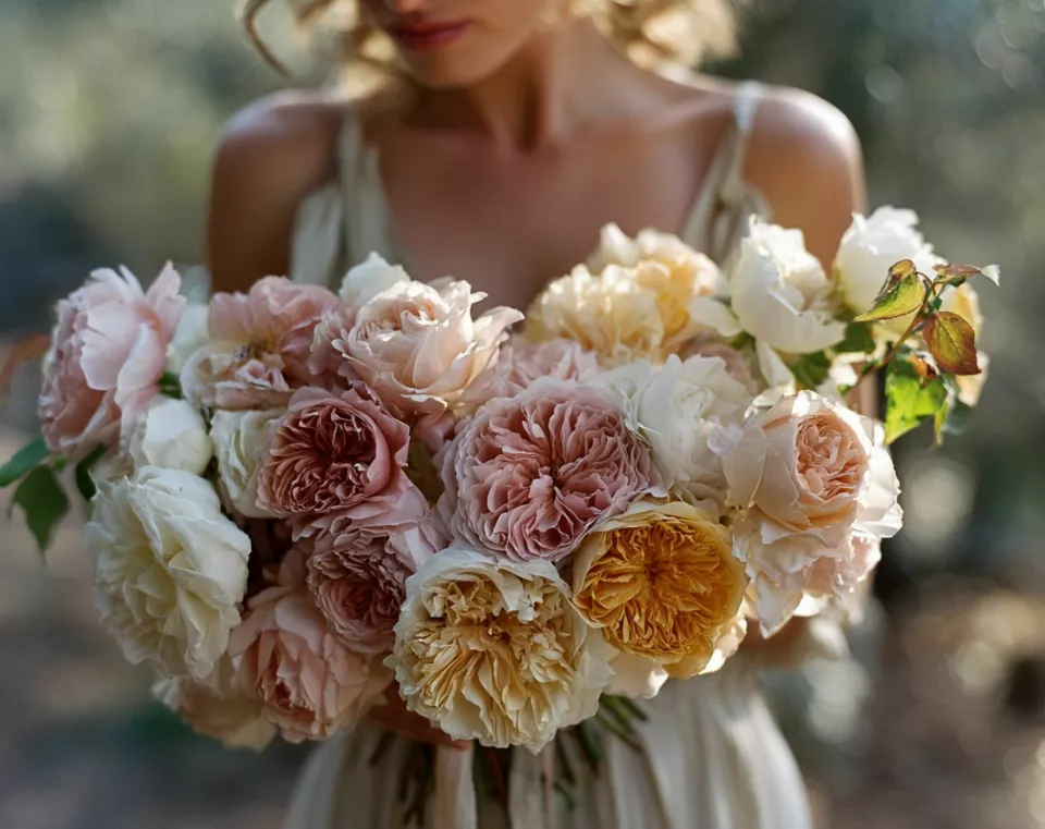 Expert Tip: "Roses get dismissed as 'basic' by couples looking for something unique. That is a mistake. A bouquet of 20 David Austin Juliet roses in full bloom is one of the most breathtaking things I have ever seen a bride hold. The fragrance alone is worth it. Roses are not basic. Cheap, poorly opened, gas-station roses are basic. Quality wedding roses from a skilled florist are extraordinary. The difference is variety, source, and the florist's skill in opening them to their most beautiful stage."