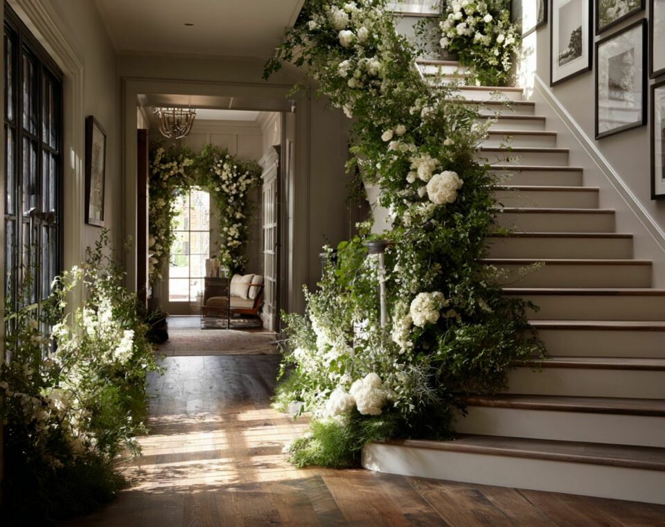 Staircase and entrance florals