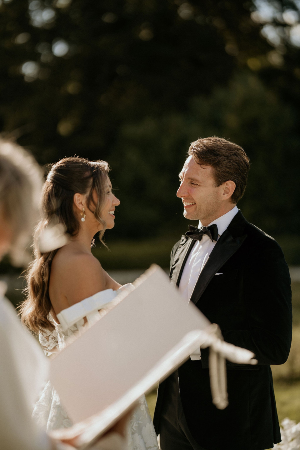 The groom speaks next, thanking both sets of parents, the wedding party, and the guests, then honoring the partner with personal words. Length: 3 to 5 minutes. The groom's speech pivots from gratitude to romance.