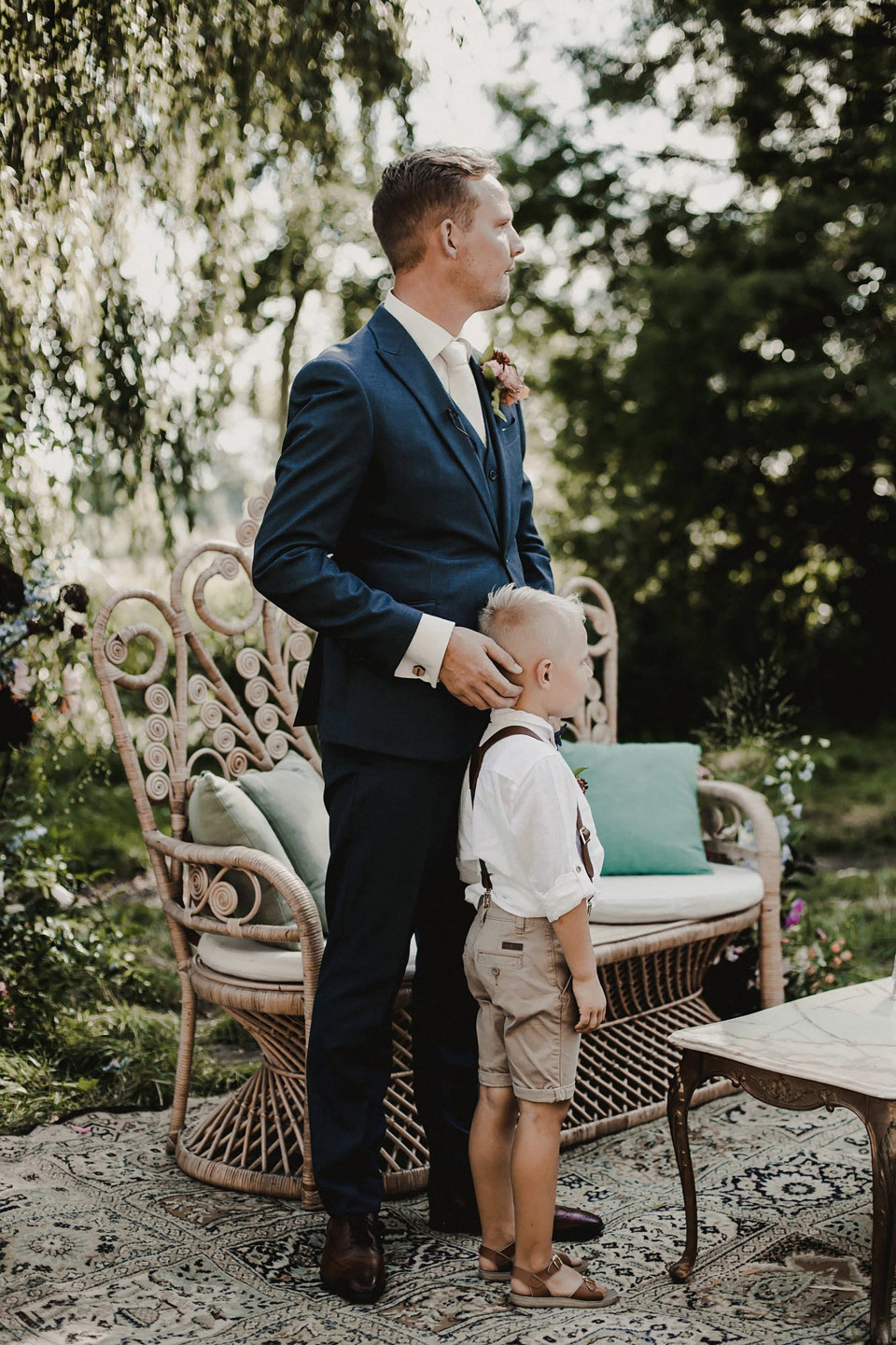 Many grooms now wear a dark suit with formal accessories (pocket square, dress shoes, tie pin) at formal weddings instead of a traditional tuxedo. This is increasingly accepted, especially at "black-tie optional" and "formal" events. A well-fitted dark navy or charcoal suit with a silk tie is indistinguishable from a tuxedo in most wedding photos.